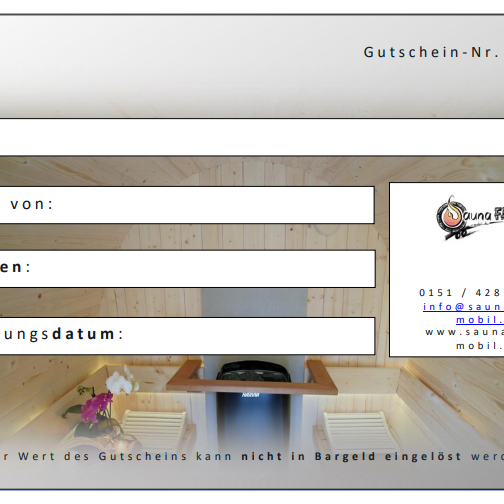 Tun Sie sich, Ihrer Familie oder Freunden etwas Gutes und buchen oder verschenken Sie, auch in Gutscheinform, eine Erholungsauszeit mit dem mobilen Saunafassl auf Rädern zu Ihrem gewünschten Termin.