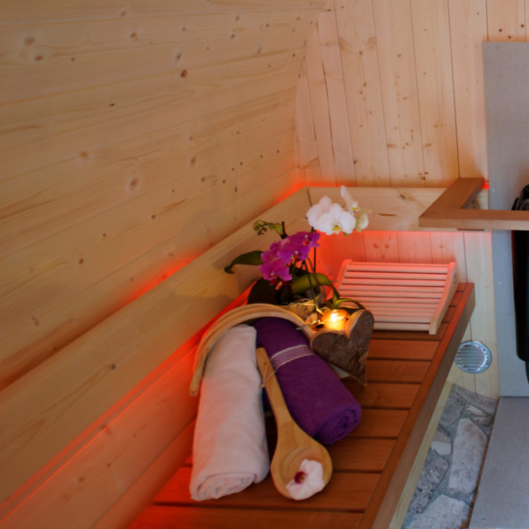 Unsere Sauna bietet Platz für 2 – max 6 Personen :-).